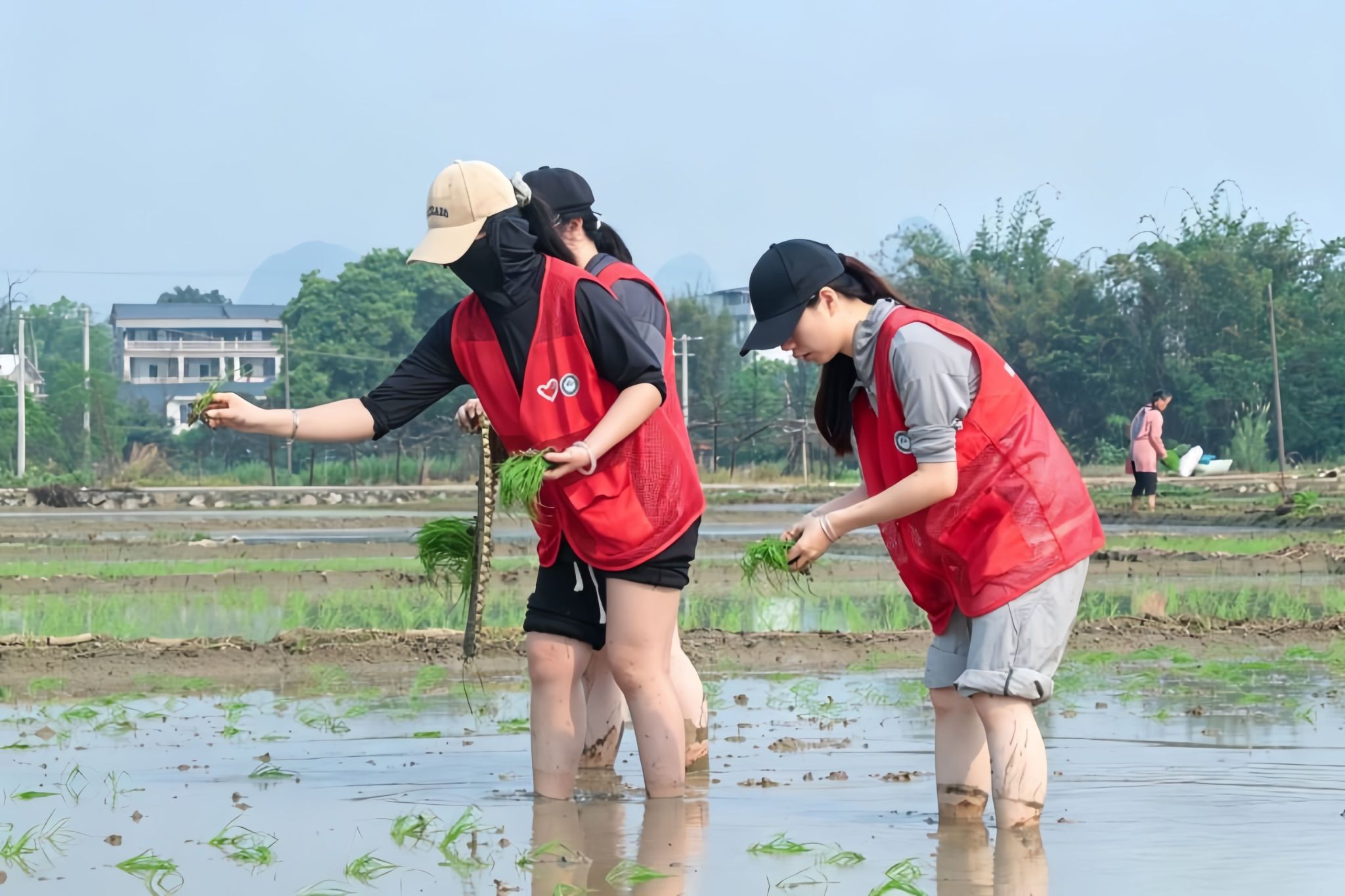 劳作期间,成员们不怕苦累,主动向农户请教技巧,在实践中体会农耕艰辛、收获协作快乐,同时与农户深入交流沟通。经过一上午的辛勤劳作,嫩绿秧苗整齐扎根田间,孕育着丰收希望,也展现出新时代青年的责任与担当。