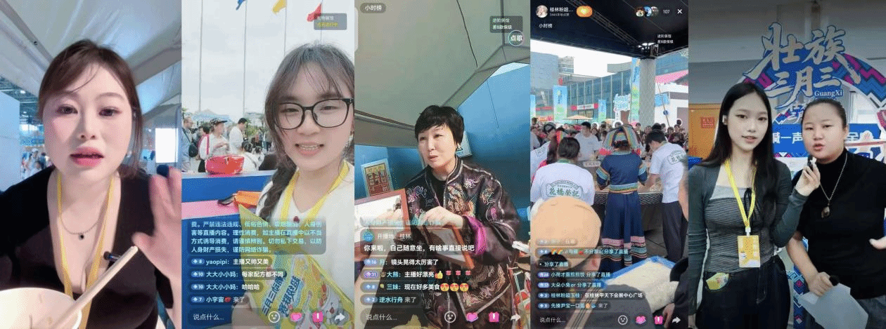 活动期间,电子商务专业学子聚焦沉浸式走播、现场拍摄与短视频创作两大核心任务,充分发挥专业优势。同学们分组走进赛事现场、特色展区与商家展位,6个账号同时开播,覆盖不同受众群体,还首次尝试用桂林电商协会官网账号直播,以扩大官方影响力。开幕当天共完成直播观看13.2万人次,其中单场最高观看量达9.2万人次,累计为32家本地米粉品牌、非遗手作、地方特产商家开展实景走播,通过生动讲解、产品试吃、互动答疑等形式,全方位呈现桂林米粉、油茶等特色产品与民俗文化;同步完成百条高质量素材拍摄,剪辑视频数十个,同学们发布的短视频当日单个播放量最高达8233次,有效提升了“粉超节”活动影响力与桂林特色产业的知名度。