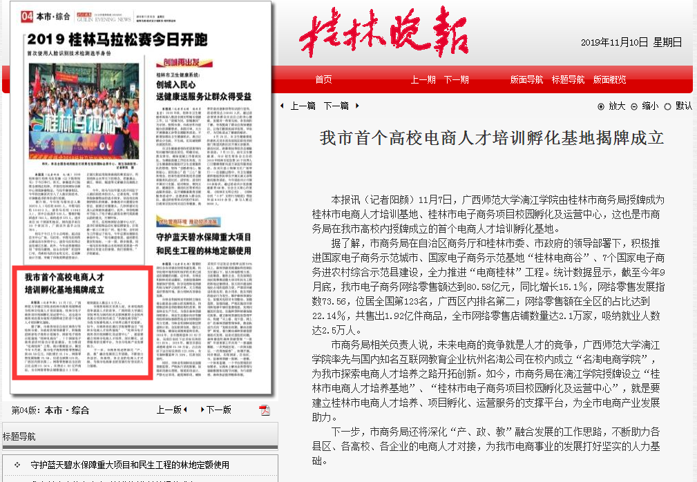 《我市首个高校电商人才培训孵化基地揭牌成立-桂林晚报