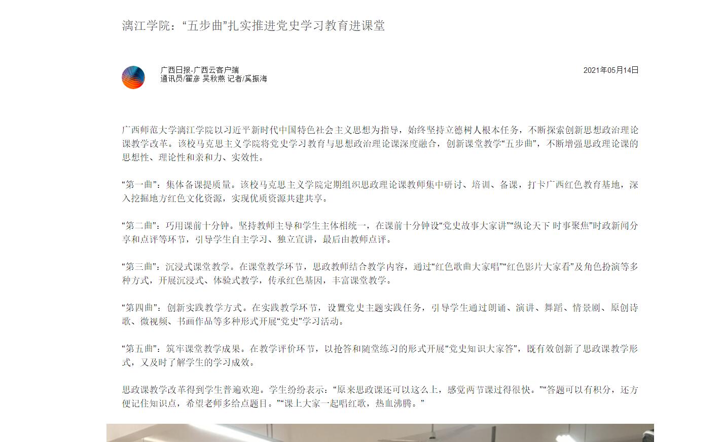原文链接:广西日报—广西云平台《漓江学院:“五步曲”扎实推进党史学习教育进课堂》
