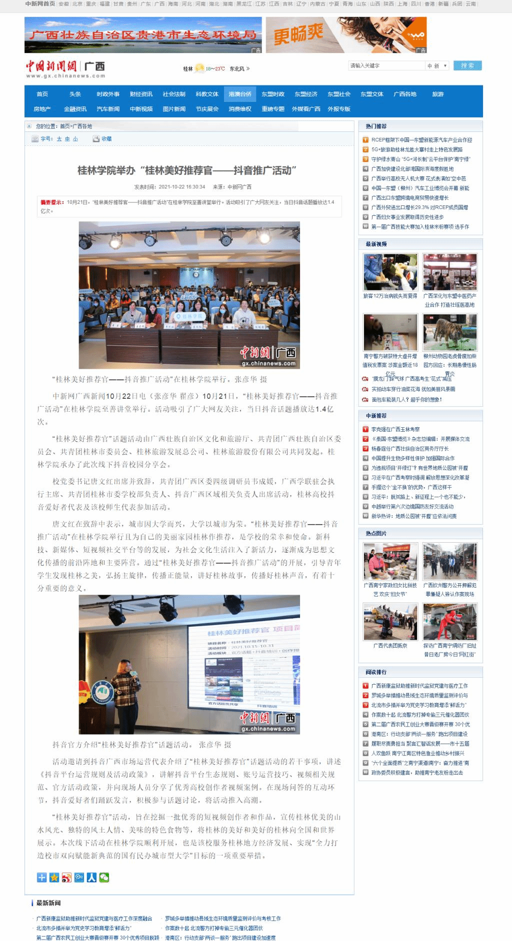 中国新闻网:《桂林学院举办“桂林美好推荐官——抖音推广活动”》