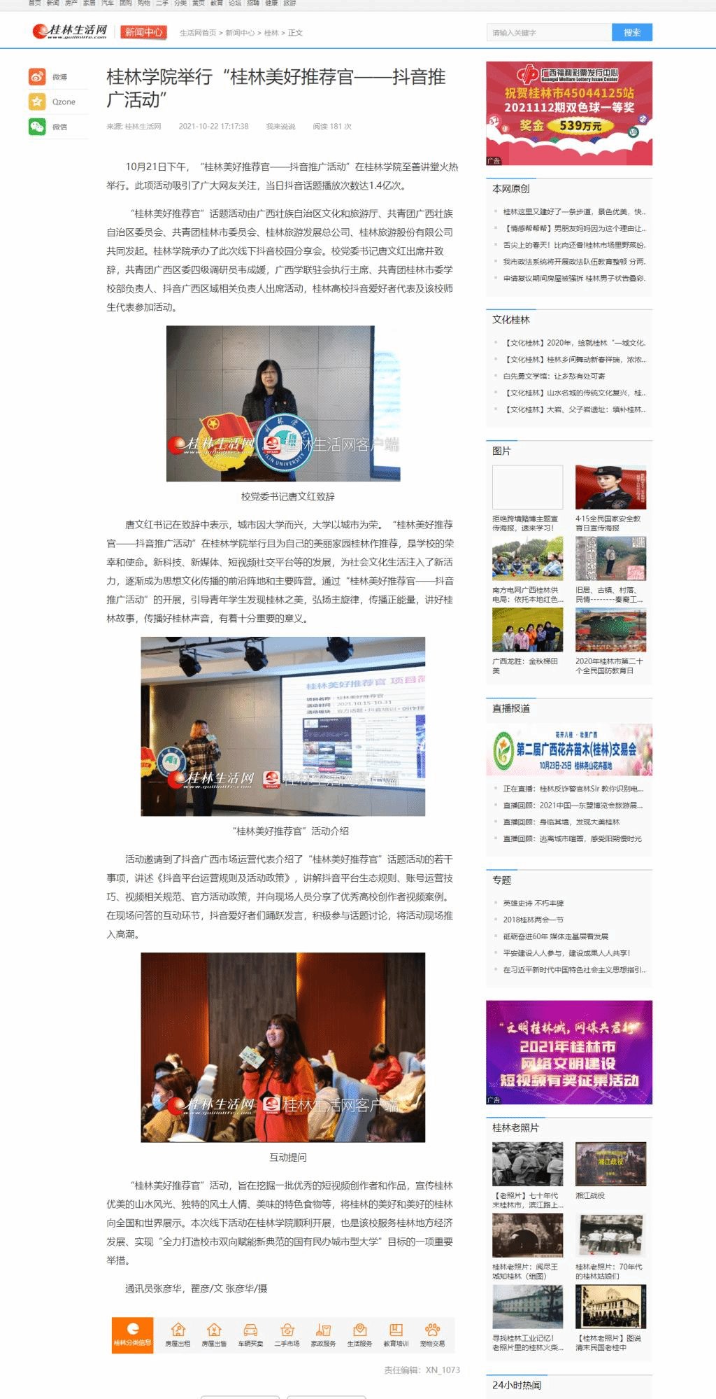 桂林生活网:《桂林学院举行“桂林美好推荐官——抖音推广活动”》