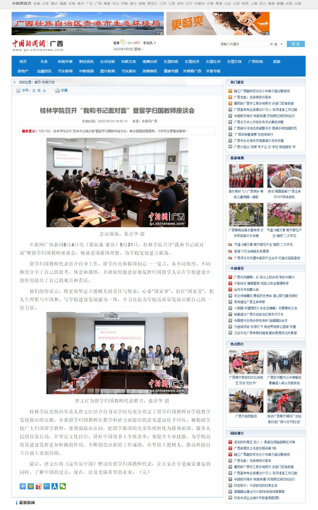 中国新闻网:《桂林学院召开“我和书记面对面”暨留学归国教师座谈会》