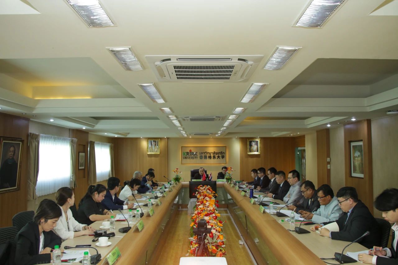 12月7日上午,桂林学院校长杨树喆、副校长刘文革一行9人来访格乐大学。格乐大学Prof Dr.Krasae Chanawongse 杨金泉校长、学术副校长素帕、行政副校长李绍云、校务委员会副主席、国际学院管理委员会主席李黎光、中国国际语言文化学院院长罗勇、人文学院院长谢明勋等负责人接见了桂林学院一行,座谈会由国际交流处副处长李文甲主持。