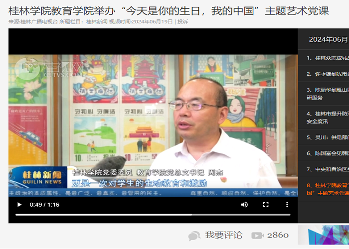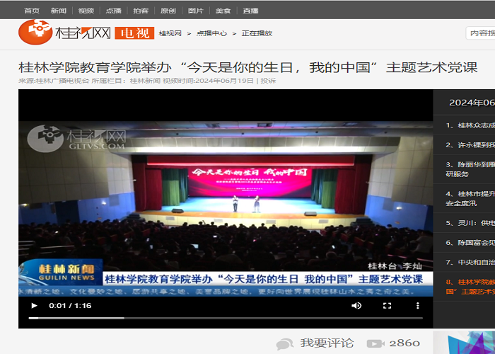 [链接]桂林学院教育学院举办“今天是你的生日,我的中国”主题艺术党课,桂林电视点播,桂视网,桂林视频新闻门户网站:https://tv.gltvs.com/202406/202406191941420cdf881f29664afd_7.shtml