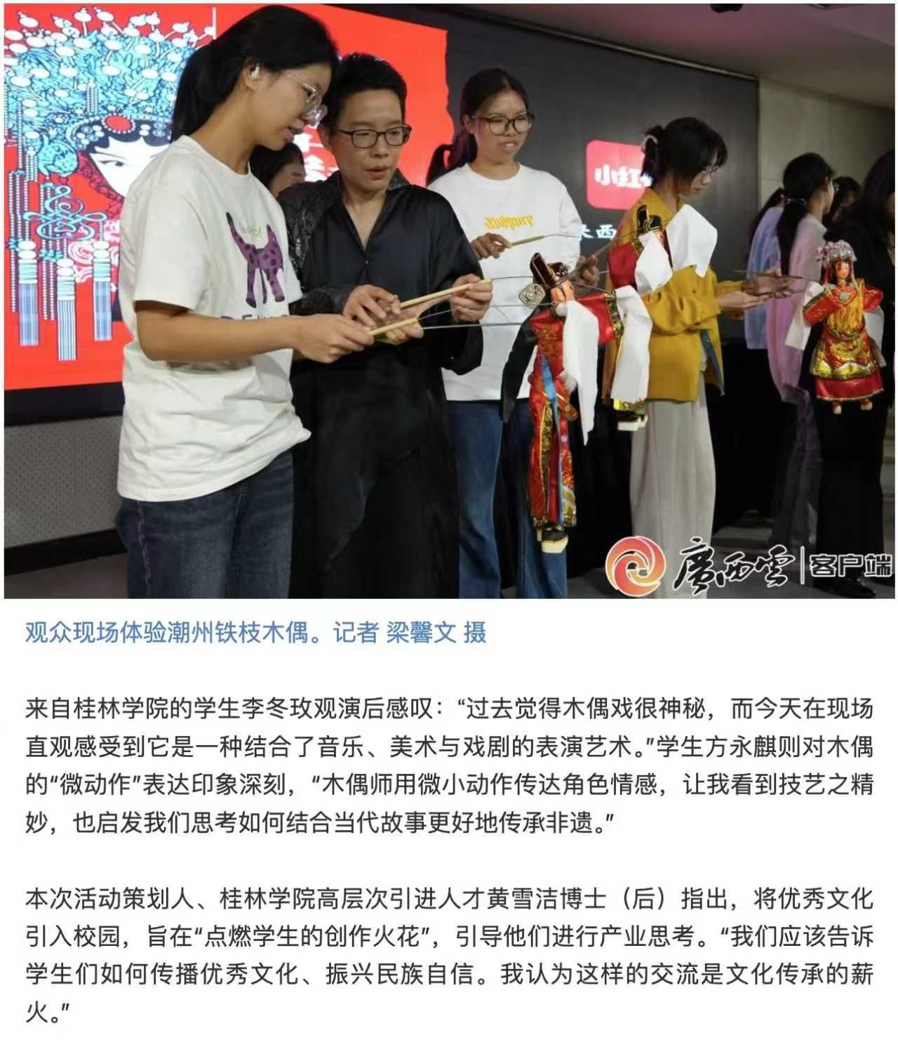 此次“文化润景艺术周”的顺利实施,离不开学校领导的悉心指导与设计,以及校内各相关部门的高效联动。未来,桂林学院将继续深化“文化润景”相关工作,为繁荣地方文化、非遗文化、推动文旅产业高质量发展贡献更多智慧与力量。