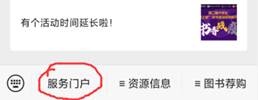 1. 打开图书馆微信公众号,点击下方的服务门户按钮。