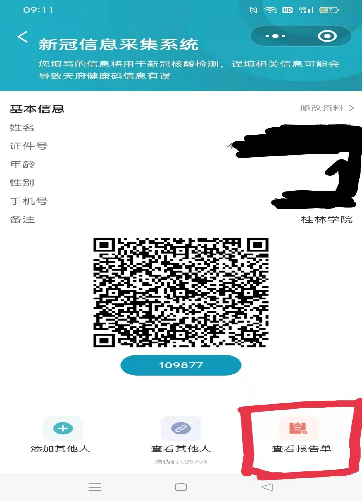 4.采样结束12小时后,点查看报告单,可查询到核酸检测结果。
