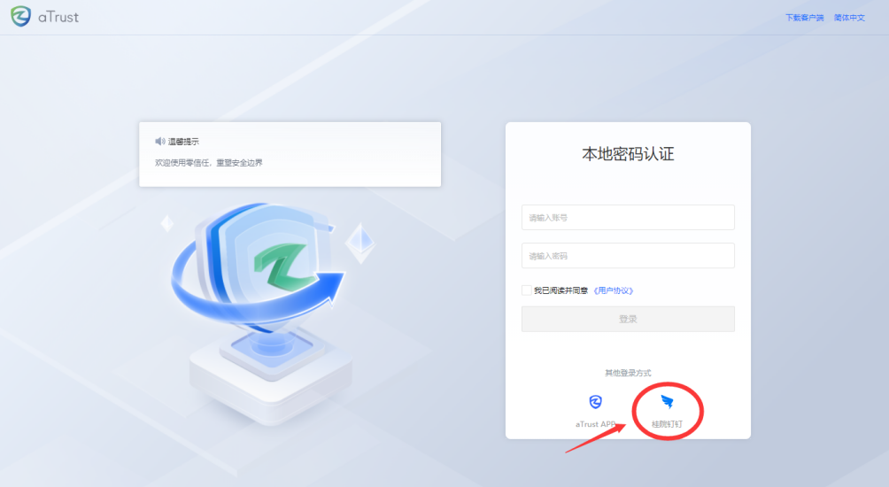 3.点击VPN登陆页面下方的“桂院钉钉”