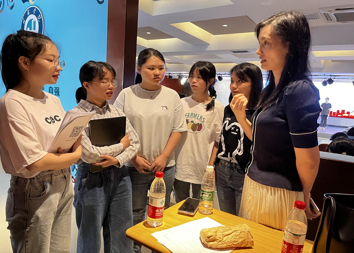 本次招聘会首先由相关负责人介绍用人单位的详细信息和拟招聘岗位信息以及应聘流程,随后,毕业生依次上台自我介绍并进行简单的才艺展示,并向意向城市幼儿园投递简历,和相关单位洽谈。