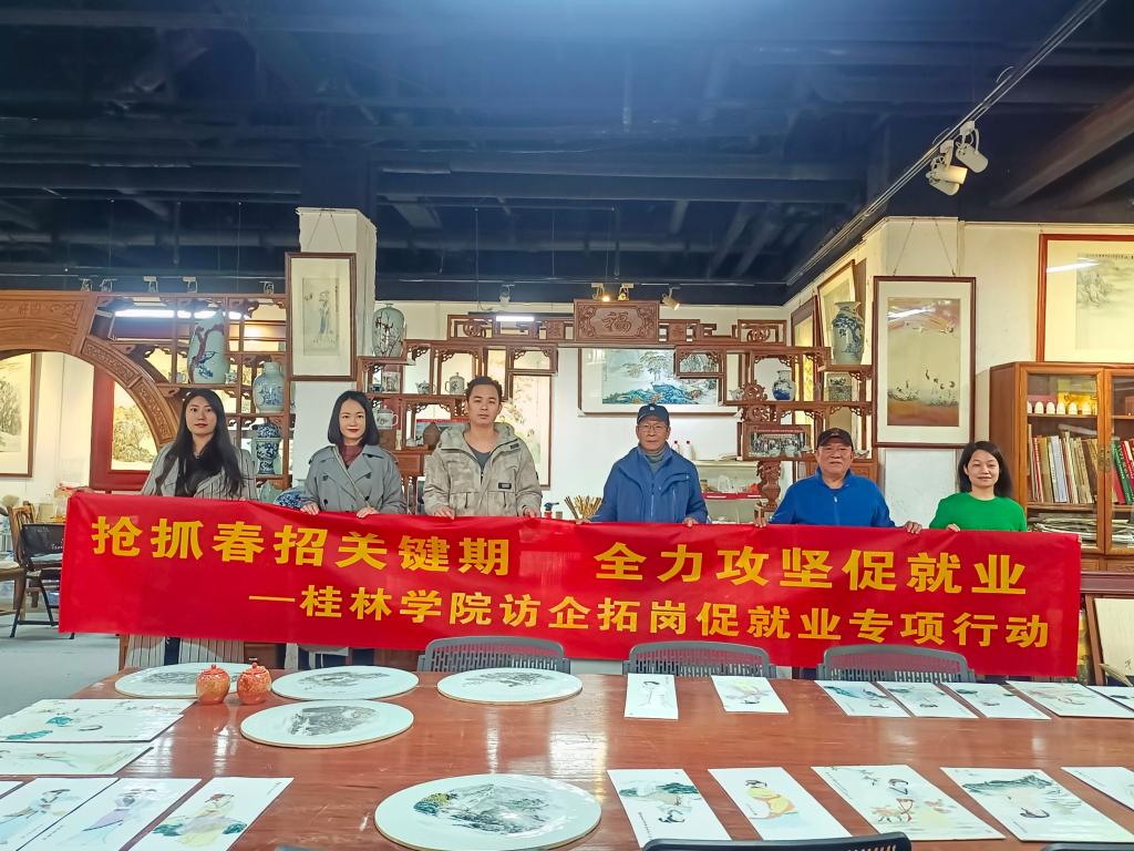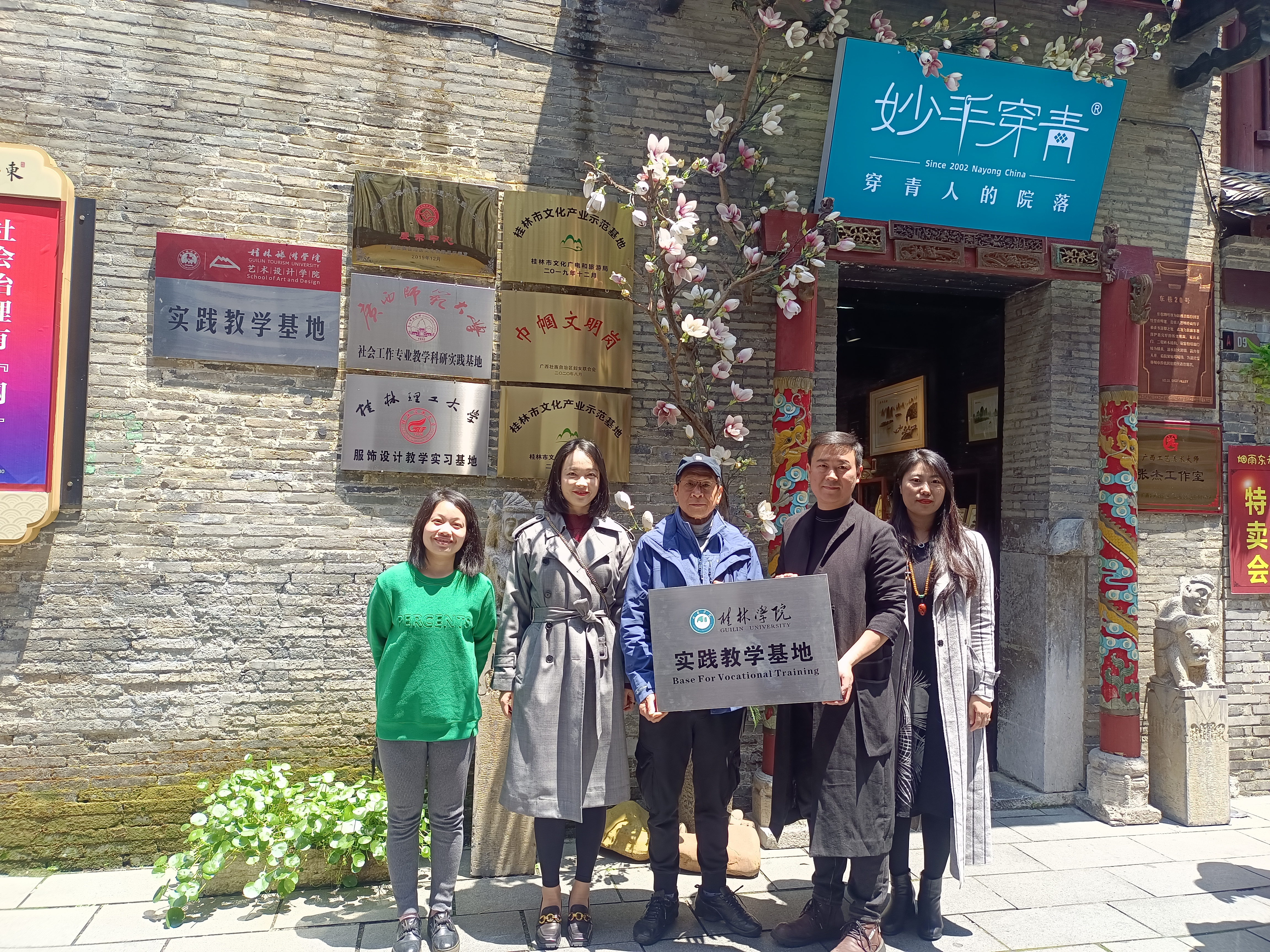 4月25日,城市设计学院院长曾子杰率队前往工艺美术类企业调研走访。曾子杰一行5人先后走访了桂林坤宁工艺品有限公司、桂林福兴堂艺术陶瓷有限公司、广西妙手穿青非遗文化创意有限公司、灵川县尚到艺术品有限责任公司等四家企业,并与广西妙手穿青非遗文化创意有限公司和桂林坤宁工艺品有限公司签署了共建实践教学基地合作协议并举行授牌仪式。