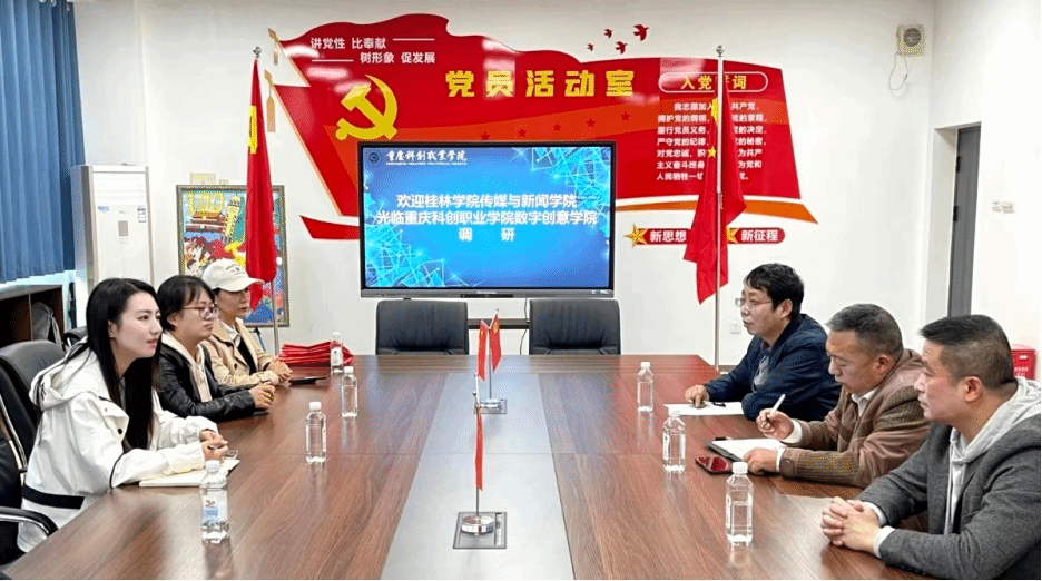 双方进行了深入地交流和研讨,分享了各自的教学理念、专业设置、实践教学模式等方面的经验和成果。胡又嘉副院长表示,泽文重庆科创职业技术学院在数字媒体技术领域的成功经验对我院专业建设具有借鉴意义。闭凤玲和郭彬彬分别介绍了我院数字媒体技术专业和播音与主持艺术专业的发展现状和面临的挑战。双方就专业课程设置、实践教学基地建设、师资队伍培养等问题进行了深入探讨。
