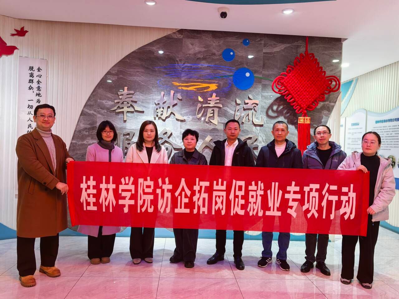 为深入贯彻党中央、国务院“稳就业”“保就业”决策部署,扎实推进就业工作“一把手”工程,精准对接企业人才需求,搭建校企合作育人桥梁,3 月 19 日下午,学校财务总监高丽娜带队,金融与法律学院院长、教研室主任、专任教师及辅导员代表随行,赴桂林市自来水有限公司开展访企拓岗促就业专项行动。桂林市自来水有限公司党委副书记赵振雄,人力资源部部长、副部长热情接待了学校一行,双方就校企合作、人才培养、实习就业等事宜展开深入座谈交流。