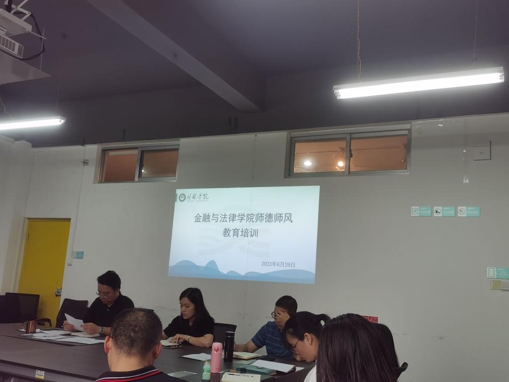6月29日下午,金融与法律学院在3207教室召开2023年春季学期期末总结会暨师德师风教育培训会。会议由学院党总支书记陈俊杰主持,学院全体教师出席了此次会议。
