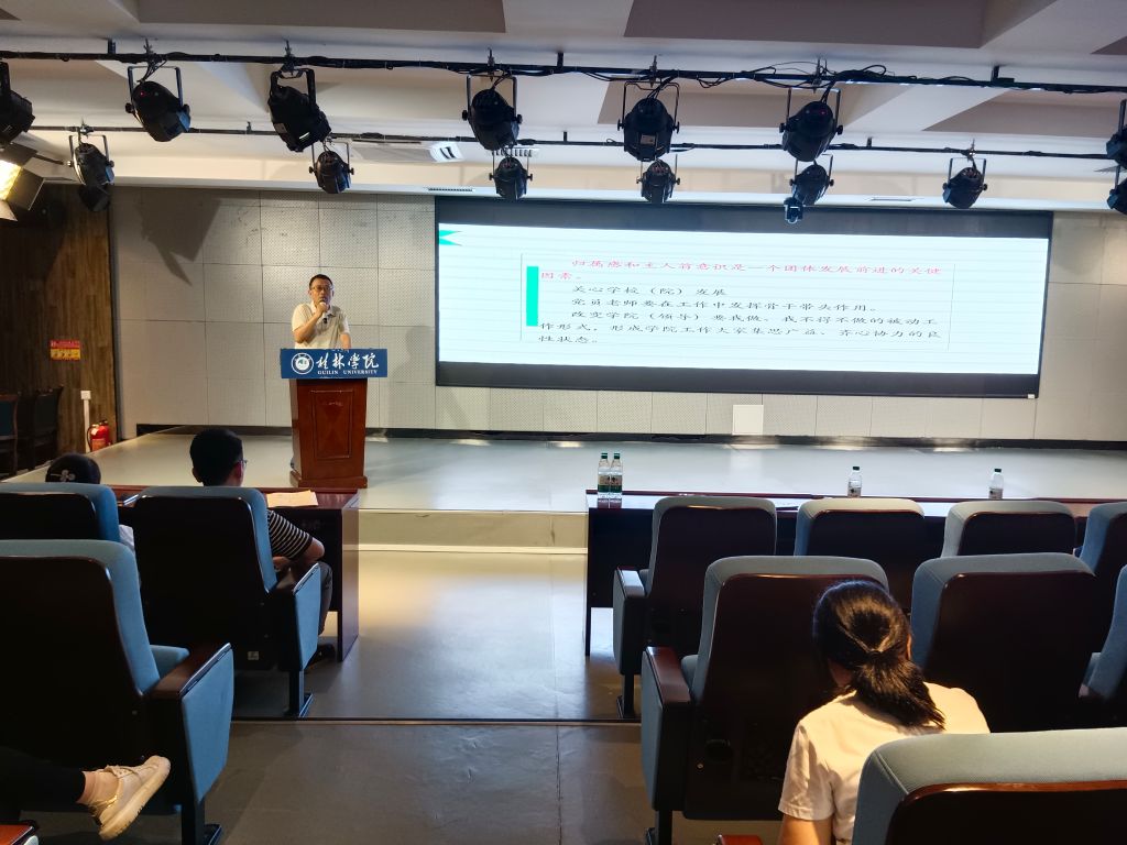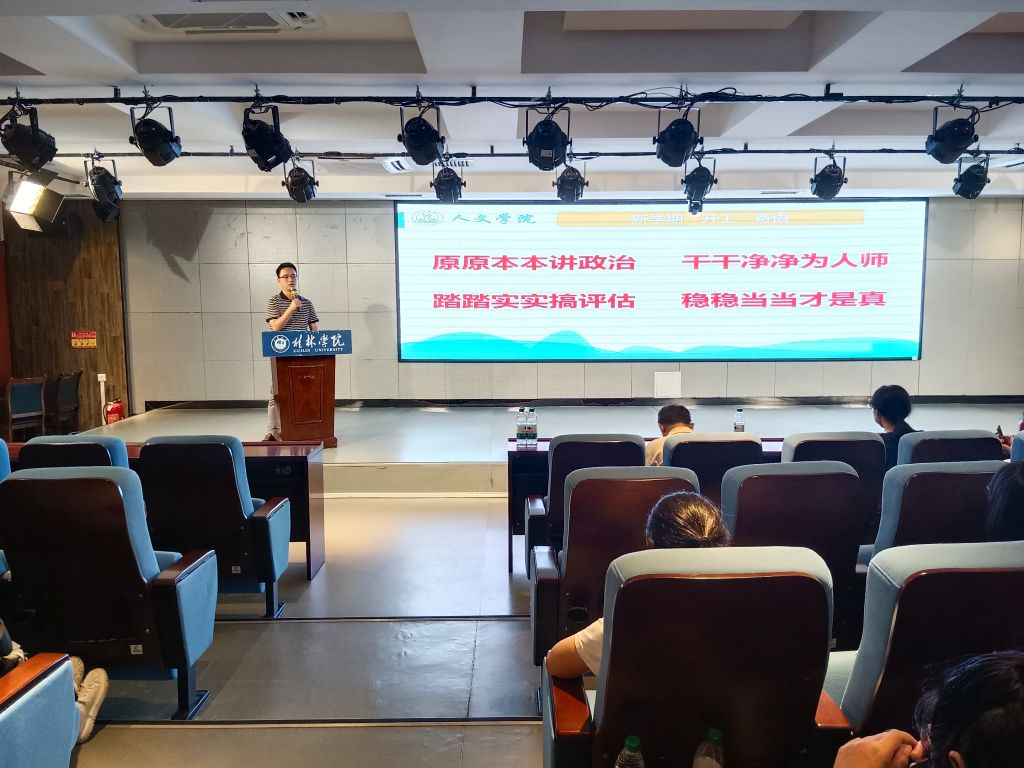 为进一步凝聚团队力量,确保开学各项工作有序、平稳、高效开展,引领全院教职工以崭新的面貌、饱满的精神迎接新学期,9月1日上午,人文学院在至善讲堂举行新学期全体教职工大会,会议由党总支书记主持,全体领导班子、全体教职工参加会议。