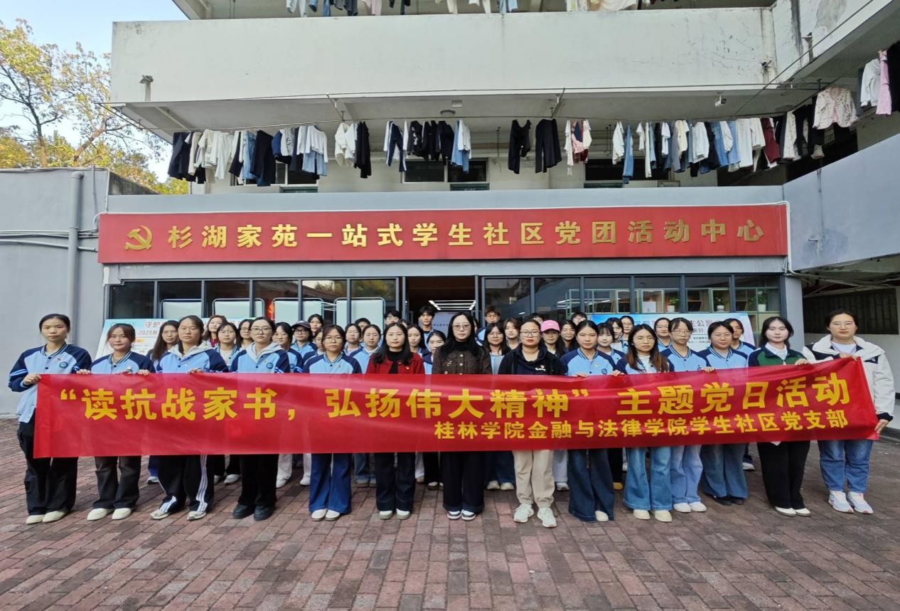 为深入学习贯彻习近平新时代中国特色社会主义思想,弘扬爱国主义精神,传承红色基因,11月12日下午,金融与法律学院学生社区党支部在杉湖家苑“一站式”学生社区党团活动中心成功举办了“读抗战家书,弘扬伟大精神”主题党日活动。