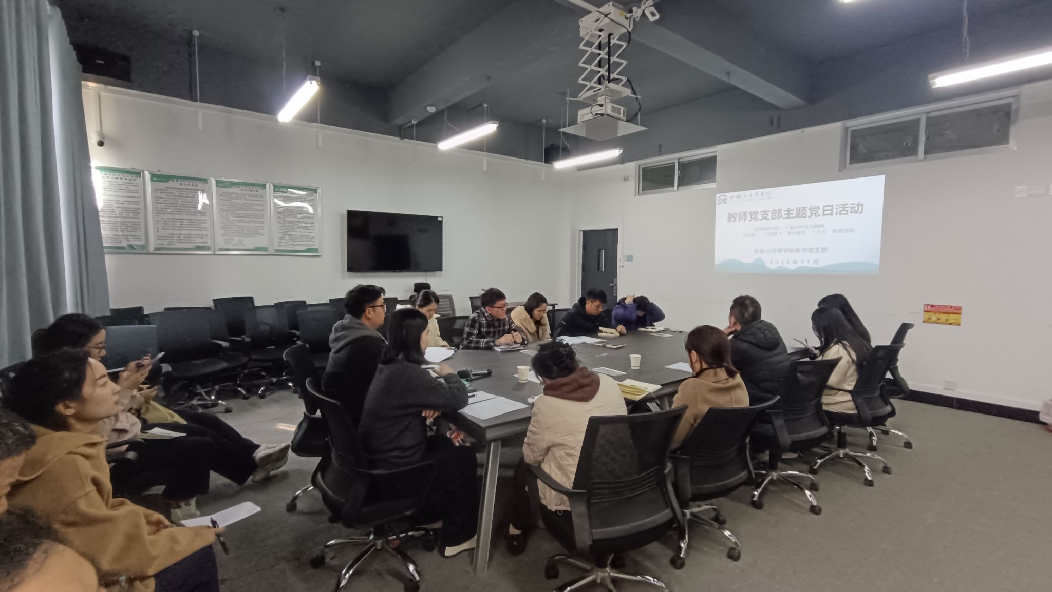 11月19日,金融与法律学院教师党支部开展“深学细悟党的二十届四中全会精神,以‘为党育人、为国育才’使命锚定‘十五五’教育目标”主题党日活动。全体党员教师、入党积极分子及新入职党员教师参会,在理论学习与思想交流中凝聚育人共识。