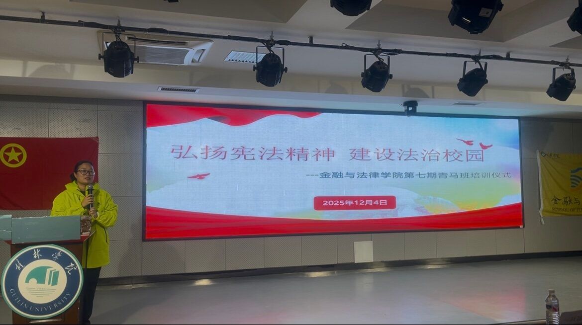 为大力弘扬宪法精神,增强青年学生的法治观念,12月4日,金融与法律学院第七期“青年马克思主义者培养工程”大学生骨干培训班开班仪式暨第一次授课在至善讲堂隆重举行。本期主题为“弘扬宪法精神 建设法治校园”,由我院团总支副书记郝环一老师授课,旨在引导学员尊崇宪法、学习宪法、遵守宪法、维护宪法、运用宪法,为建设法治校园、法治社会贡献青春力量。