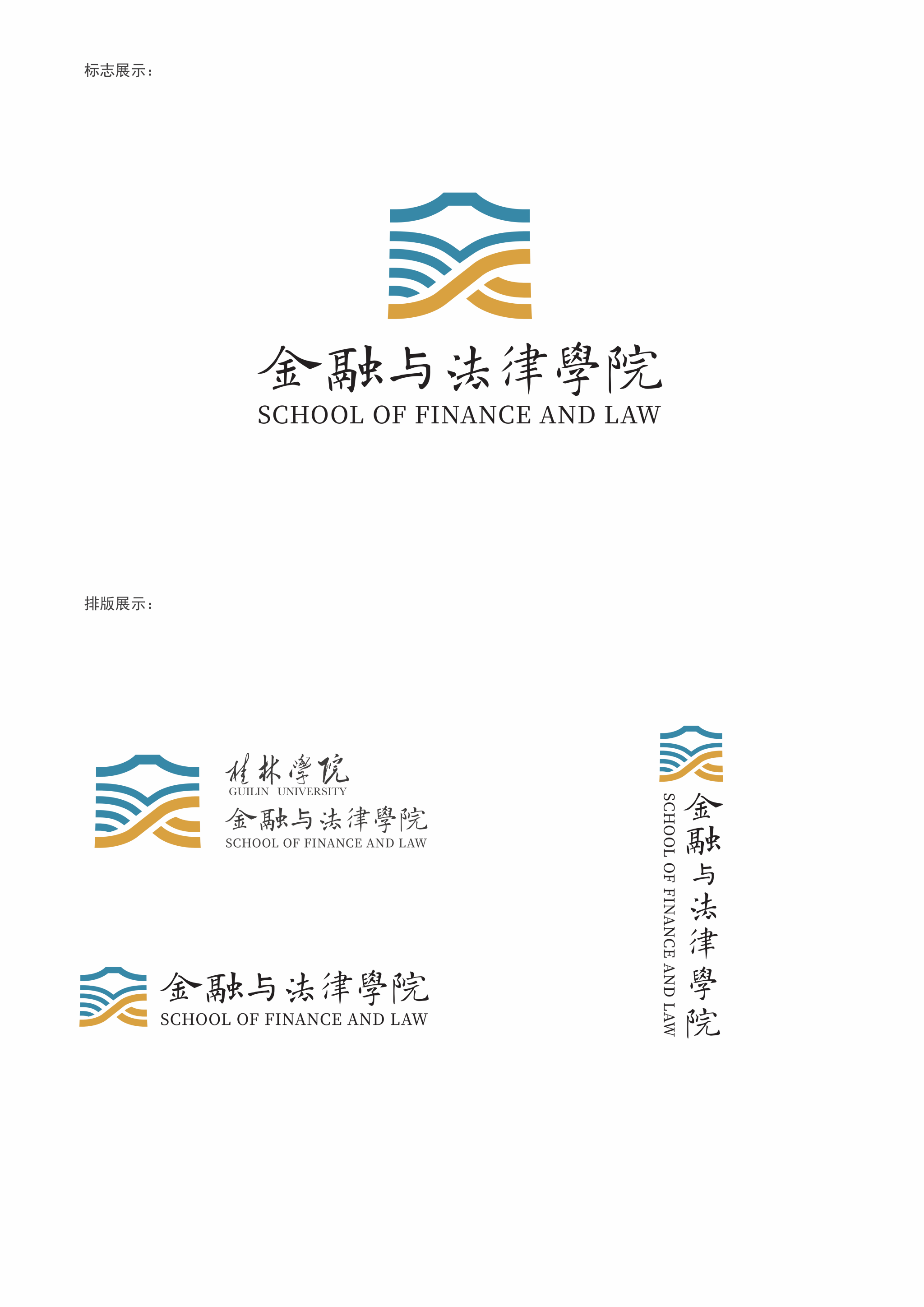 本标志为“金融与法律学院”专属设计,融合教育理念、学科特色与地域文化,以简洁现代的视觉语言传递学院的办学精神与价值追求。