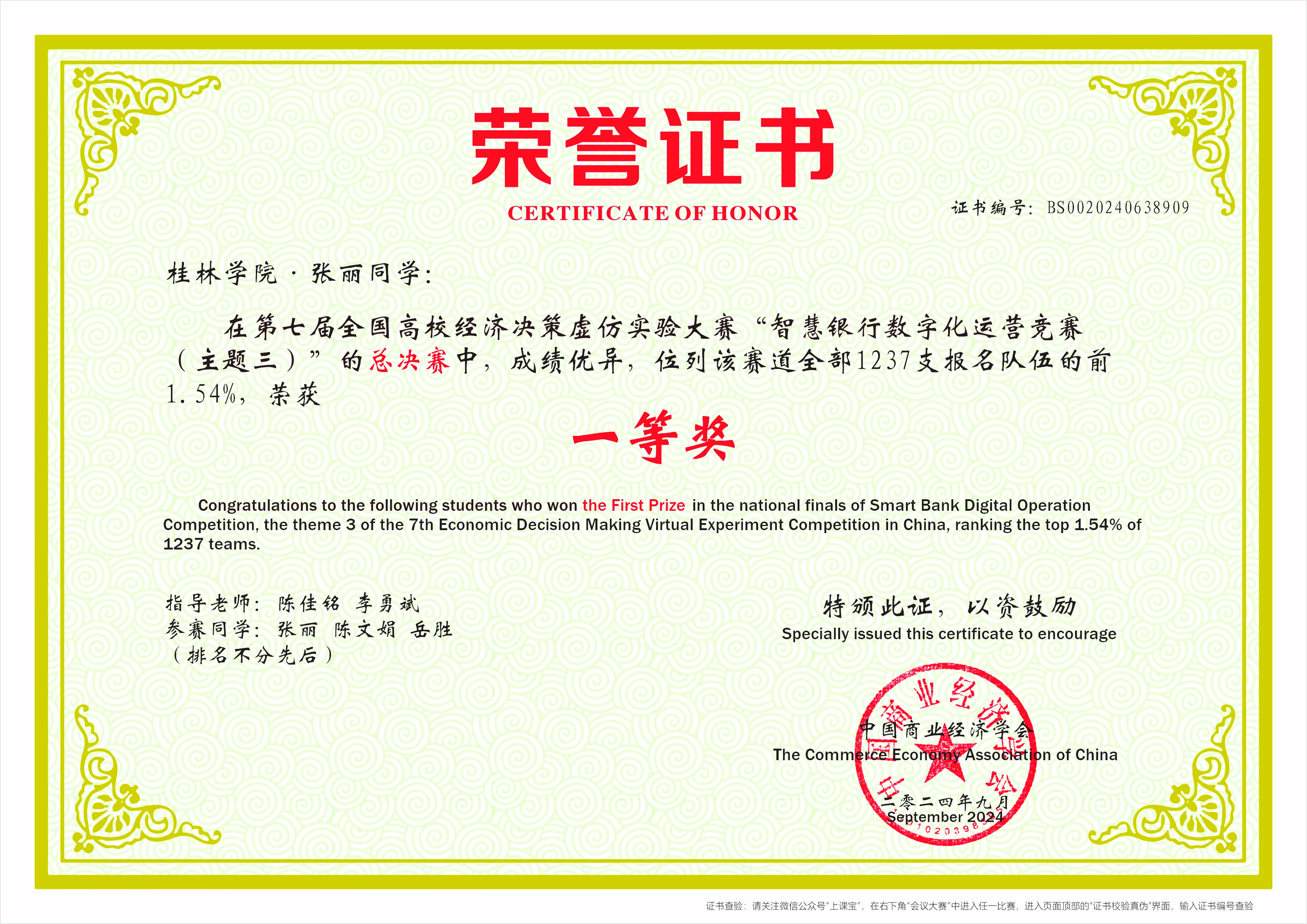 第七届全国高校经济决策虚仿实验大赛“智慧银行数字化运营竞赛”一等奖