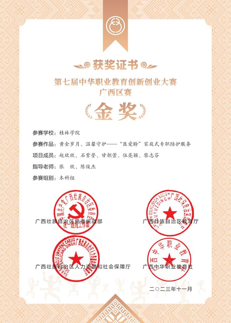 第七届中华职业教育创新创业大赛广西区赛金奖