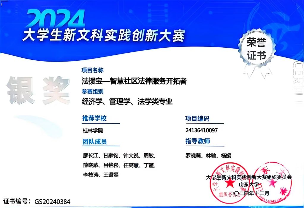 法学专业师生团队获2024大学生新文科实践创新大赛银奖