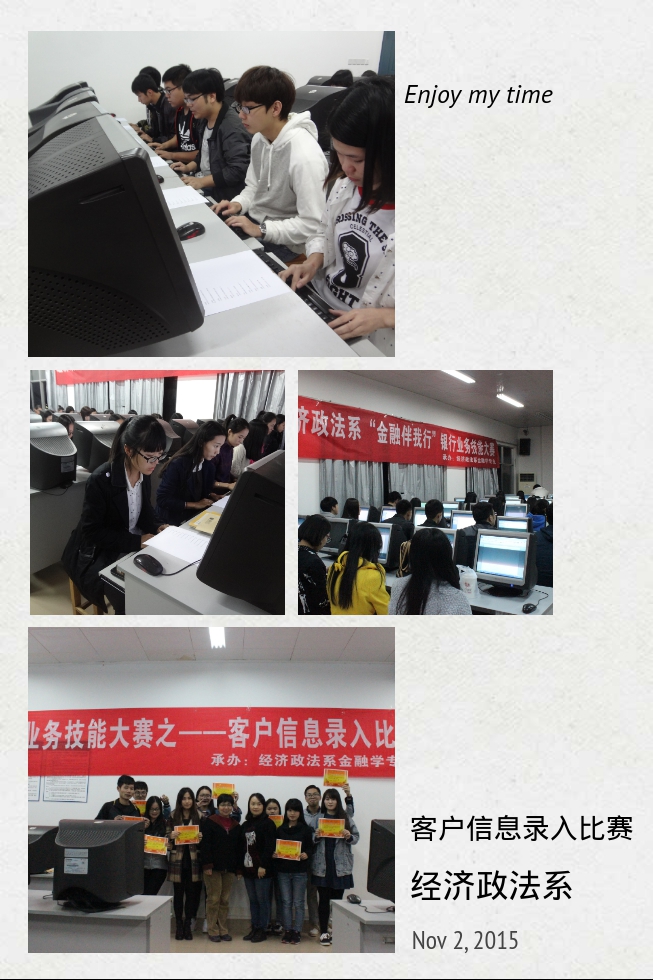 本次大赛在金融教研室的精心筹划和动员下,参赛积极性高,三项比赛合计将近600人/次参加,受众面广。经过激烈地角逐,我系2013级学子中涌现出了多名银行业务技能高手,大赛成效显著。
