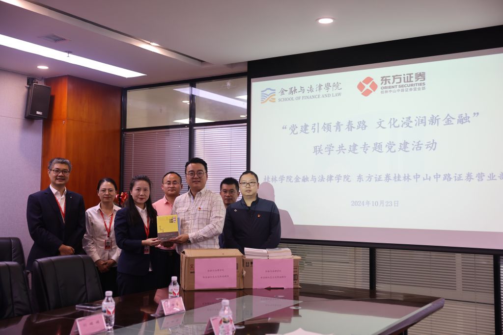 活动最后,学院党总支代表全体师生向东方证券赠送了一批金融经济类专业图书图书,这是金法学院“新金融红色青年文化阵地”的特色活动,旨在感谢东方证券长期以来对学院支持与帮助,也是双方深化合作、共同育人的新起点。