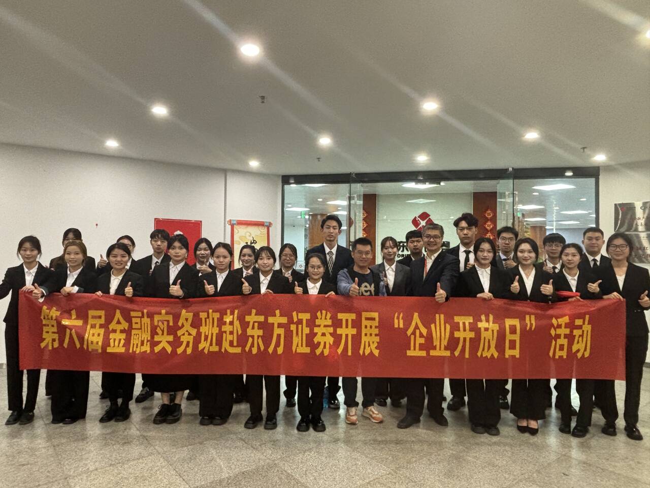 为提高金融实务班学生的行业认知能力,加强实践教学环节,10月23日下午,金融与法律学院第六届金融实务班的学生前往东方证券桂林营业部开展了一次别开生面的“企业开放日”活动。此次活动由学院党总支书记、梁志民老师、韦翔老师带队,旨在通过实地调研与学习,加深学生对证券行业的理解,并为其未来的职业发展方向提供有力支持。