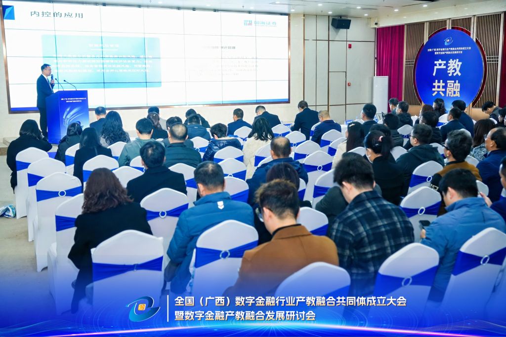 12月12日至13日,由国海证券股份有限公司、广西证券期货基金业协会、广西财经学院、广西金融职业技术学院共同主办的全国(广西)数字金融行业产教融合共同体成立大会暨数字金融产教融合发展研讨会在广西金融职业技术学院举行。此次大会汇聚了来自官方协会、高校、企业等共130余名领导与专家学者参会,共同探讨数字金融行业的产教融合之路,标志着广西乃至全国在数字金融领域的教育与产业融合进入了一个全新的阶段。