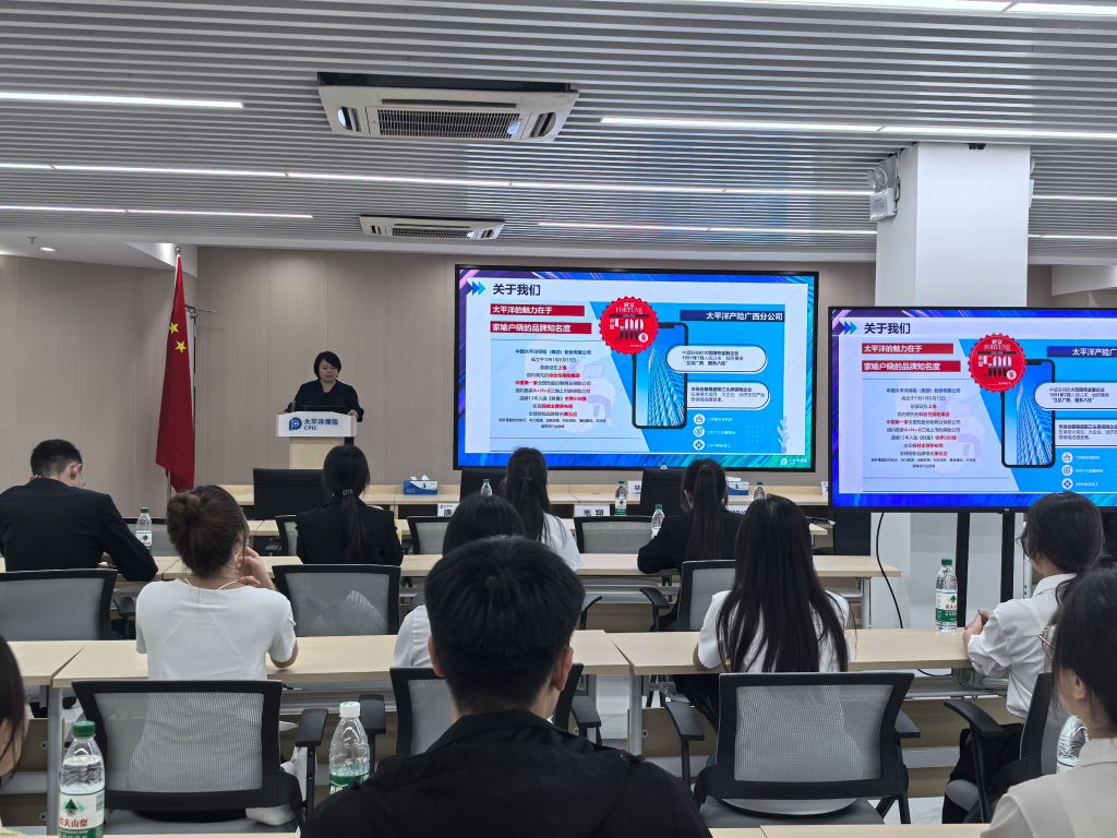 活动伊始,太保桂林中支总经理刘延宗亲自带领师生们参观了公司职场,刘延宗总经理详细介绍了职场的各个区域和功能布局,让同学们全方位领略了财产保险公司业务运作的全貌。随后,在公司会议室,分公司线上平台部的范志超总经理则向学生们深入介绍了公司的企业文化,通过生动的案例和精彩的讲解,让学生们感受到了公司独特的价值观和发展愿景。此外,同样来自线上平台部的沈立老师,则以个人经历为切入点,阐述了太保产险公司在新型营销渠道的战略布局,并对线上业务的招聘岗位的工作内容以及薪资待遇进行了详细介绍,让在座即将走入社会的学生们对未来可能从事的工作有了清晰的了解,也让他们对自身的职业规划有了更明确的方向