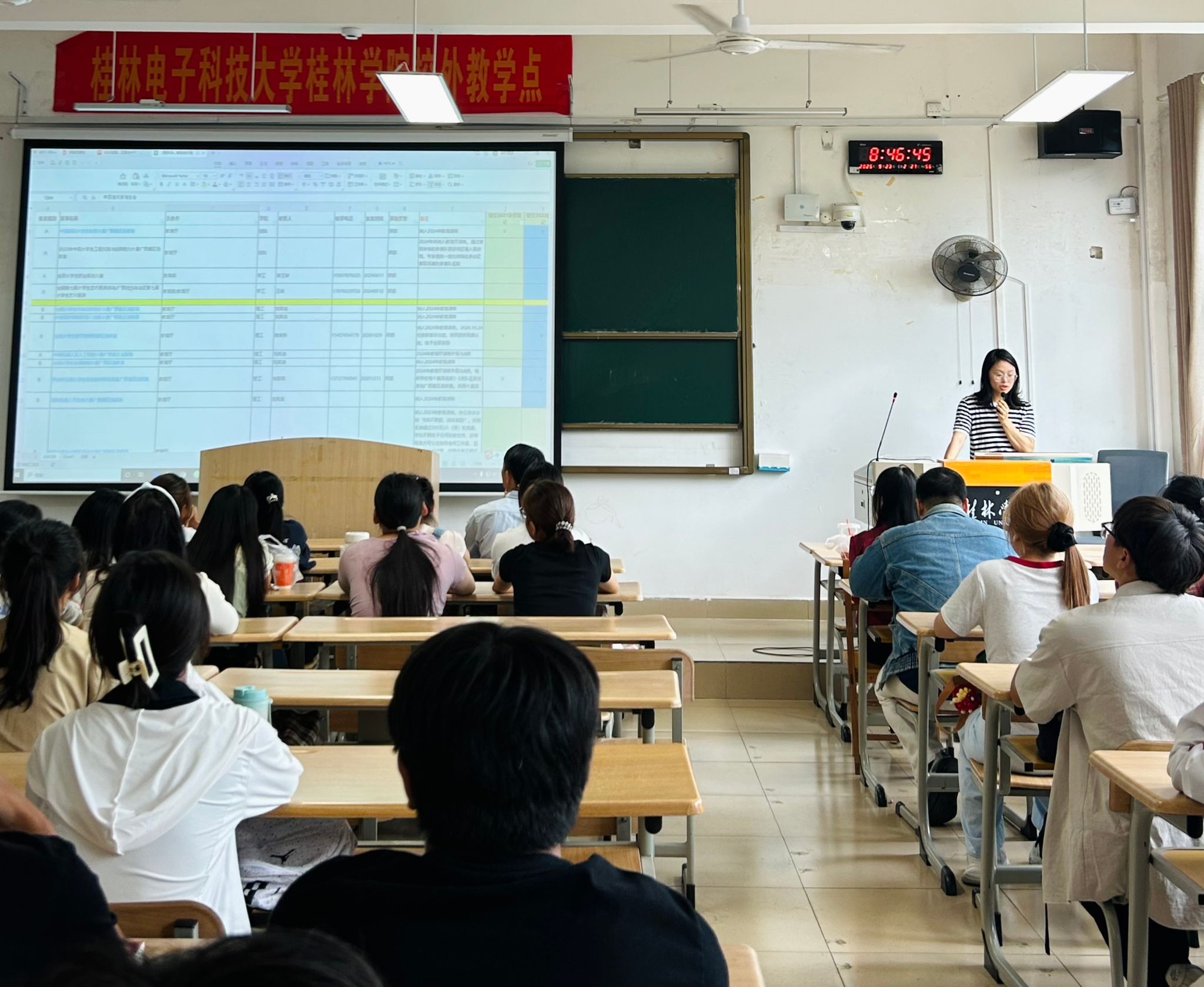 活动在热烈的掌声中拉开帷幕。国际贸易实务教研室主任蒋旭明首先为新生带来生动的“专业第一课”,他从专业介绍、师资队伍到职业发展,全方位解读国贸专业的特色与优势。随后,专任教师通过展示往届学子在各类竞赛中的骄人成绩,点燃了新生的参赛热情。各位老师依次上台,围绕自己的研究方向、所授课程以及最热衷的教学话题倾情分享,瞬间拉近与新生距离。特别环节中,优秀校友欧锐锋通过视频连线分享从校园到职场的成长历程,为学弟学妹们指明发展方向。
