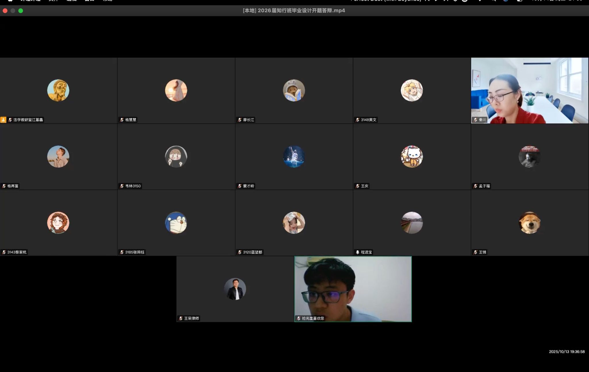 为积极落实学校、学院关于法学知行班本科生毕业设计工作的相关要求,保障本科生毕业设计质量,强化实务意识,应用法学教研室于10月13日通过腾讯会议在线上组织开展了2026届知行班毕业设计开题答辩工作。13名知行班法学专业毕业生参加答辩。法学专业客座教授:广西德恩律师事务所王荣主任律师、广西君健律师事务所程进宝律师作为校外专家参加了此次开题答辩。