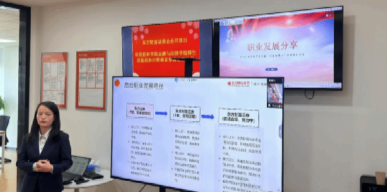 活动伊始,东方财富证券桂林营业部负责人唐瑛围绕公司发展历程、经营特色及业务布局进行了全面介绍。作为中国领先的互联网财富管理综合运营商,东方财富证券依托“科技赋能”与“用户为中心”的经营理念,在智能推荐、大数据风控等领域持续创新,其证券业务全牌照优势及线上线下一体化的服务模式给同学们留下了深刻印象。唐总还特别强调了公司在投资者教育领域的投入,与我院金融人才培养目标高度契合。