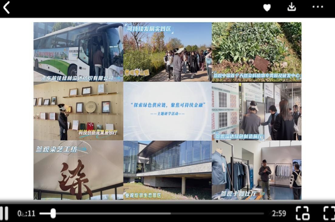 研学归来后,同学们围绕ESG与可持续发展主题认真打磨成果。国贸方向的小组分析了溢达全球供应链的ESG风险,或结合“新疆棉”事件探讨贸易中的可持续发展问题;金融方向的同学聚焦纺织企业绿色转型的金融支持模式,对溢达的ESG投资价值展开分析;还有小组研究“十如仕”品牌的ESG信息披露等交叉议题。剪辑的视频里,记录了大家参观展厅、观摩自动化生产线、与企业工作人员交流探讨的珍贵瞬间,还原了沉浸式研学的全过程。