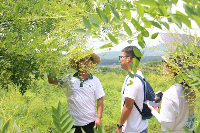 18日上午,调研小组来到最后一个示范区“中国金槐之乡”——桂林市全州县,对全州县金槐特色产业(核心)示范区进行考察。种植金槐是一个富民的产业,既能发展林下经济、合理利用和有效保护资源,又能给农户带来显著的经济效益,拓宽农民增收渠道,加快农民脱贫致富的步伐。