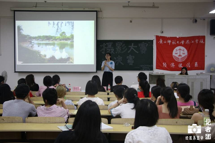 本次摄影大赛共有十幅作品进入决赛环节,活动系党总支书记秦丽芸的开场致辞中拉开序幕。她表示摄影大赛是经济政法系优秀文化的体现,是对经济政法系的热爱,是对美好生活的热爱,对此她预祝参加比赛的同学能够取得优秀的成绩。随后在主持人介绍比赛规则,进入决赛的九名选手依次按照抽签的顺序上台展示自己的作品。参赛选手的作品丰富多样,各有千秋,或是校园风景、或是夏日夕阳景、或是故乡怀旧景、或是水鸭戏春江,各个作品淋漓尽致的展现了生活中不经意的美。参赛选手通过作品的背景,讲解了作品的内容、个人的拍摄角度以及通过作品想要表达的情感。选手的精彩展示赢得在场嘉宾的热烈掌声。最后,由团总支副书记贺春先做出点评,她表示此次摄影大赛充分展现了青年大学生丰富的校园生活,参赛选手也能够充分抓住生活的细节,并把把这些美好的事物定格在照片里,深度挖掘其潜在的意义。