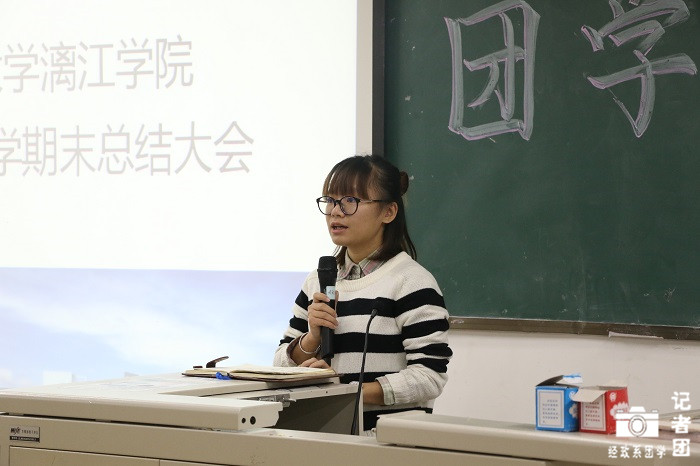 会议的最后,成雅贞副书记、林凤凤书记依次上台总结。成雅贞副书记在总结中提到团学成员对内对外都应时刻注重礼貌问题,规范自身行为,展示经政学子的风采。也希望团学成员不忘初心,继续前行。林凤凤书记在总结中提出将创新团学期末总结大会一贯形式,以新颖的课件展示方式来带动各部门工作积极性。她鼓励同学们积极参与各项活动,争取校级荣誉。同时,对文印、奖状、证书等的报费提出明确的规定,她希望各部门能善于反思总结,不断进步。