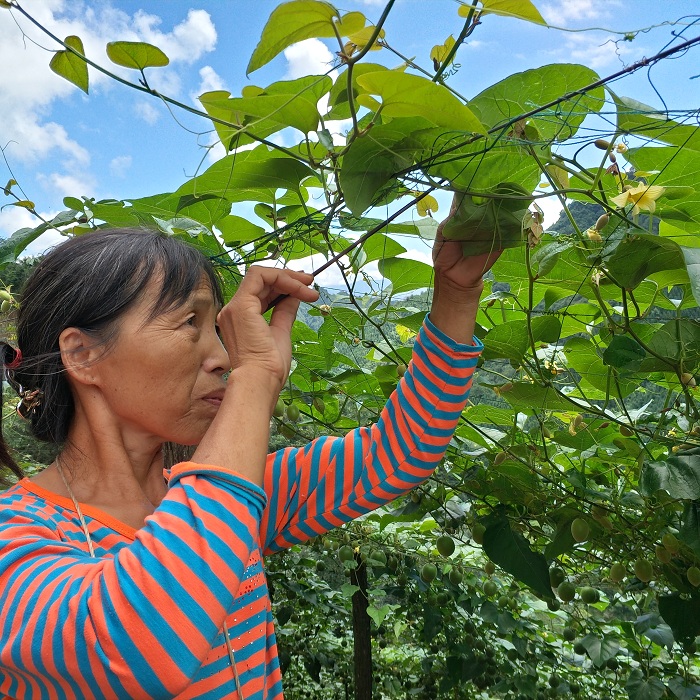 在实践考察期间,调研团队受到了大坂山罗汉果基地的负责人李前兴的热情款待。在采访中,李总经理说道:“从一个生意人的敏锐眼光出发,我决定把所有资产和精力都投入到罗汉果产业之中,同时受北京罗汉果节的邀请,在全国的平台上进行推广宣传,预计在不久之后,将在京东开放专门的罗汉果宣传窗口。”随后,调研团队跟随着基地工作人员参观加工车间,并详细解说每一加工流程及机器的操作方法。紧接着,调研团队实地走访了种植基地,在种植人员的指导下亲自尝试对罗汉果人工传粉,同时还对罗汉果树进行了施肥与浇水。