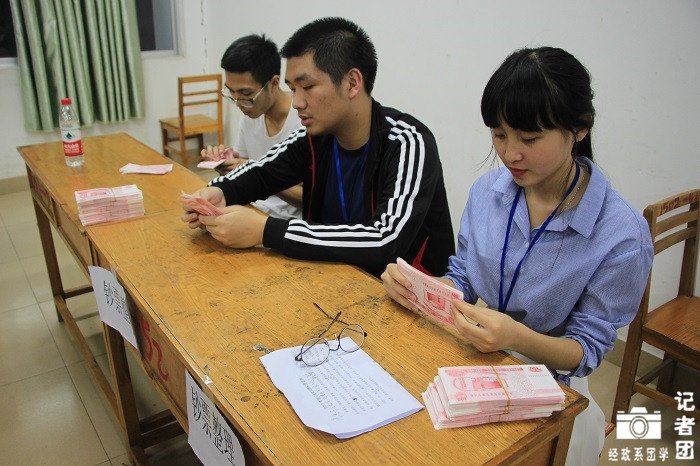 为加强专业知识和专业技能,鼓励在校大学生主动掌握银行的基本操作技能,4月17日晚,第五届银行技能大赛初赛于公共教学楼1501、1502教室举行,本次比赛到场嘉宾有经济政法系团总支书记林凤凤、系书记团、主席团等,特邀中国建设银行高新支行工作人员作为培训嘉宾。