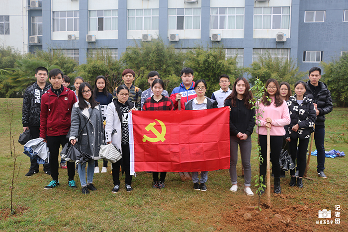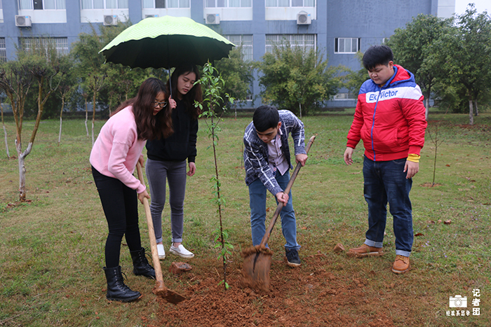 即使下着绵绵细雨,也浇不灭学生党员们共创绿色校园的热情。活动伊始,经济、金融、国贸、法学的学生党员代表带着工具前往指定地点进行活动。在同学们积极讨论和交流植树分工细节后,学生党员们手持铁楸、锄头开始掘土,将一颗颗绿色的树苗种下,并从教学楼打来一桶桶干净的水为其浇灌。最后,学生党员们在树前合影,留下了一起建设绿色校园的珍贵回忆。