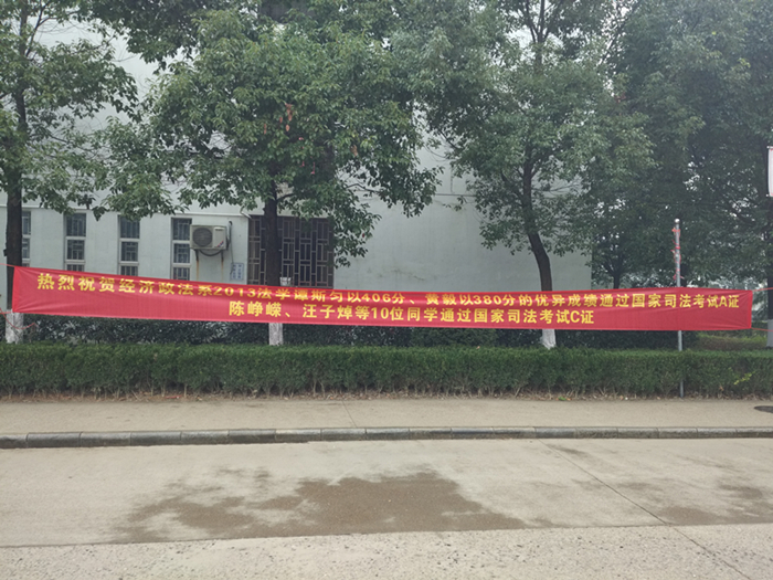 2016年国家司法考试成绩于11月底公布后,经济政法系2013级法学专业学生在本次司法考试中首创佳绩,谭斯匀以406分、黄毅以380分的高分通过国家司法考试A证,陈峥嵘、汪子焯等10位同学通过国家司法考试C证。