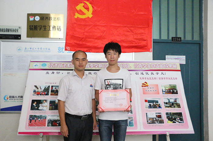 活动开始,主持人首先宣读表彰名单。经过一个学期的考核, 2013级法学、2014级国际经济与贸易、2015级经济学三个专业获得学风优良班级荣誉称号,金融学学生党支部获得优秀学生党支部。经济政法系党总支书记、副书记分别为获奖党支部、班级颁发荣誉证书。随后,作为连续六个学期获得学风优良班级的2013级法学学生代表杨强同学给大家分享经验。他在介绍班级管理做法的同时说到,班级就像一个紧握的大拳头,必须紧紧拧在一起,凝聚班级力量,班级建设才能取得优秀成果。经济政法系党总支书记甘华成在活动上发言,他指出今年我们迎来建党95周年,每位党员同志应牢记党员身份,自觉带头践行“两学一做”,鼓励在此次表彰会上获奖的党支部要起到积极示范作用,以身作则;获奖班级要注重传播班级管理的优秀做法,再接再厉,带动其他班级,为我系创造优良学风发挥模范作用。