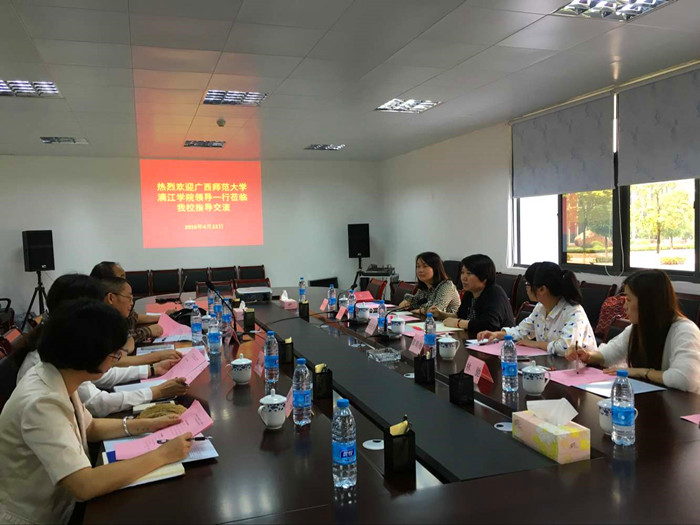 为进一步优化和完善专业建设,提高学院经济类及法学专业的办学水平和质量,同时也为设立“投资学”新专业开展前期调研工作,4月22日上午学院副院长杨庆庆率领经济政法系及教务与科研管理处相关负责人一行到广西财经学院考察学习。广西财经学院教务处副处长罗奇红、经济与贸易学院副院长程怀儒、金融与保险学院副院长蔡幸、法学院副院长兰艳、发展规划与教育发展中心发展规划部副主任周琼参加了此次交流。