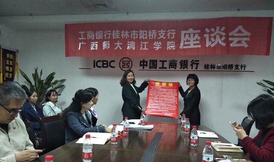 工商银行桂林分行人力资源部副总在会上表示,表示希望我系能与工行有进一步的合作,加强业务交流,同时也希望我系能多参加工商银行面向学校所举办各类型活动。