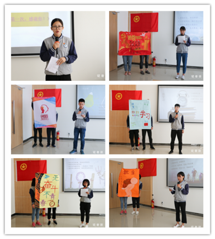 活动中,团员代表制作了精美海报,诠释了对理想、学习、奋斗、担当和创新的理解。校工会主席、党政事务部副部长廖莎老师结合学习、工作和生活的经历,对同学们的展示一一进行了点评。廖莎老师强调,作为新时代大学生,一是要坚定理想,筑牢精神支柱,树立远大的人生观、价值观和世界观;二是要刻苦学习,练就过硬本领,在刻苦学习实践中成为栋梁;三是要矢志奋斗,书写时代风采,成为新时代的主人;四是要敢为人先,投身创新创业,努力追求青春梦想;五是要勇于担当,书写不朽青春,在新时代书写芳华。