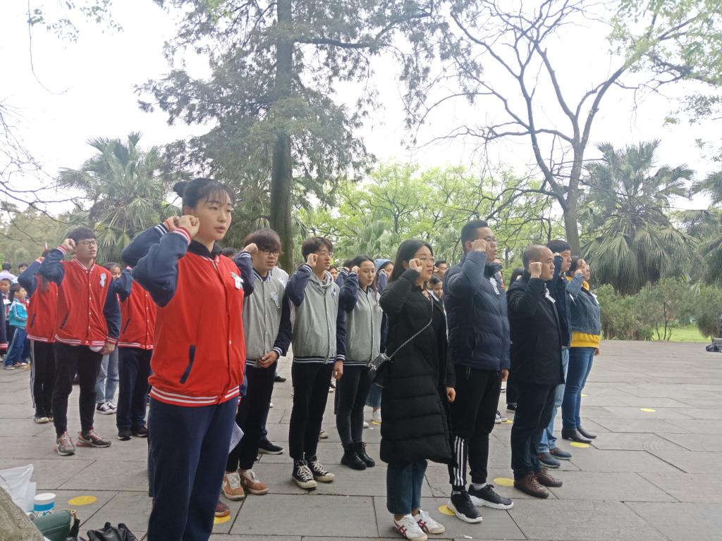 在学生代表刘家彤发言中,再次表达了对烈士的缅怀之情,她表示,将继续继承和发扬革命先烈的爱国主义精神,为现代化社会主义建设添砖加瓦。在她的带领下,师生重温了入团誓词。党总支书记甘华成在纪念塔下进行了讲话,他希望全体师生能够学习伟大的革命先烈精神,继承先烈遗志,不忘历史,不忘初心,继续为中国共产主义现代化建设而奋斗。最后,活动在校学生代表为烈士拟写悼词中结束。