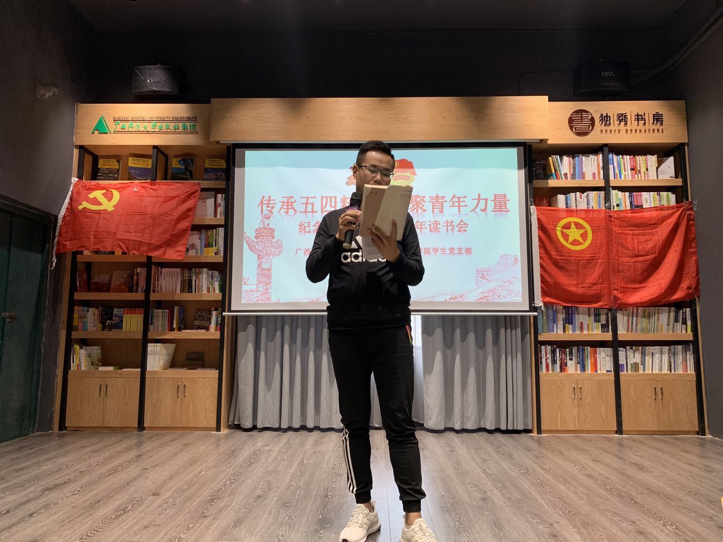 为弘扬“五四”爱国精神,传承“五四”精神文化,丰富我院学生的人文情怀,在五四运动100周年即将到来之际,商贸与法律学院学院学生党支部以“4.23世界读书日”为契机,组织全体党支部成员在独秀书房开展“传承五四精神,凝聚青年力量”——纪念五四运动100周年读书会活动。校团委干事覃倩云以及我院各学生党支部党员、积极分子等四十余人参加了本次活动。