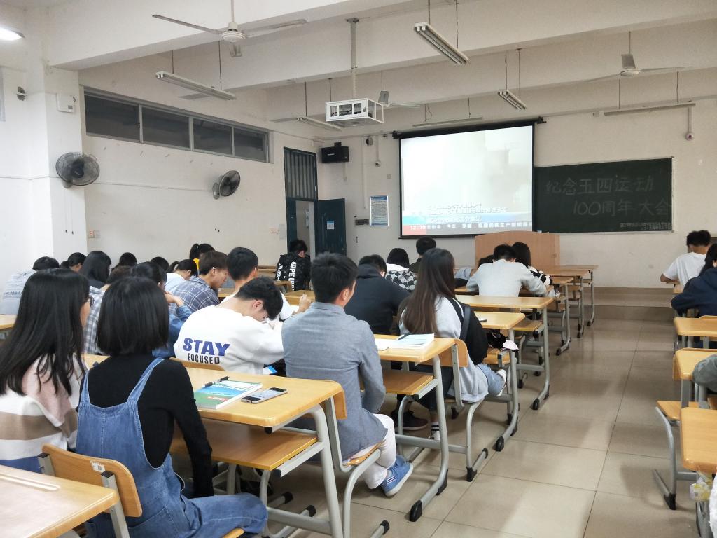 4月30日上午,纪念五四运动100周年大会在北京人民大会堂举行,中共中央总书记、国家主席、中央军委主席习近平出席大会并发表重要讲话。商贸与法律学院团总支组织全体团学干部观看了大会。