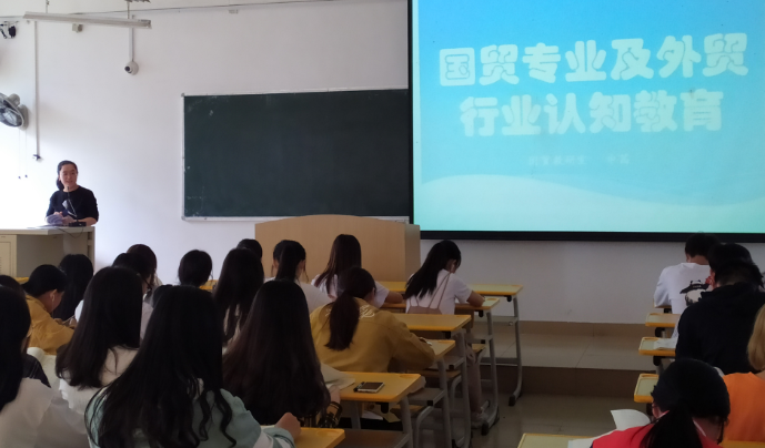 2019年5月20日下午,商贸与法律学院国贸教研室在1217教室开展国贸专业认知及外贸行业认知教育活动,本次活动旨在加深国际经济与贸易专业低年级学生对国贸专业人才培养体系及外贸行业的了解,明确当前国贸专业学生专业课程修读结构及就业前景,尽早进行合理的大学生涯及职业规划。